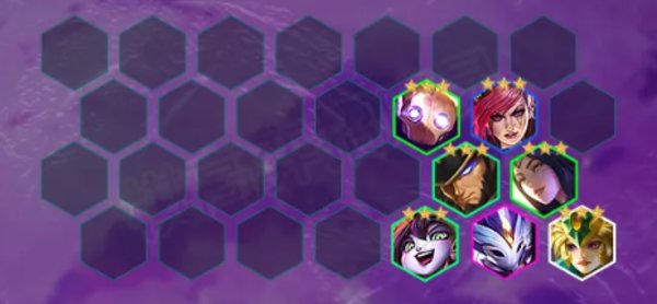 如果阵容棋子青丘灵狐、机器人、仙灵女巫、命运之手这4枚棋子达到三星就可升级7人口,添加棋子驭影双生。如果在5-5之后这几枚棋子还没三星就留出升级7人口的金币,其他金币搜光找这几枚棋子的三星,否则容易打不过已经大成的换形游侠与狂野刺。