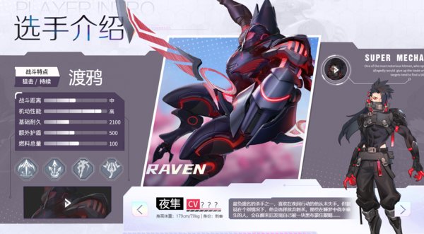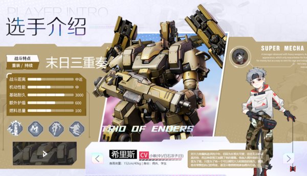 游戏中的空中制霸,可变换成战斗机形态,在空中对地面的敌人造成持续的输出,机动性应该是游戏中最高的机甲了,适合喜欢秀操作的玩家。