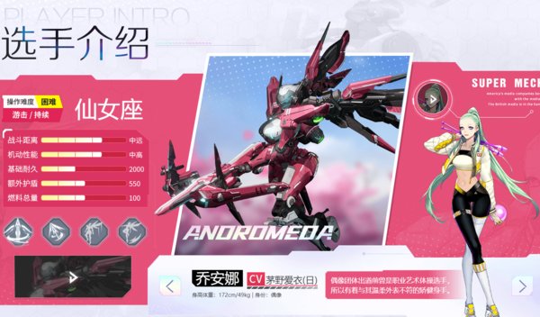 首先仙女座这个机甲机动性还是非常强的,可以在空中停留,虽然攻击很高但是对操作要求也非常高,玩家们需要多多练习射击才能发挥好的效果,新手玩家们不推荐使用,需要多多练习一下。