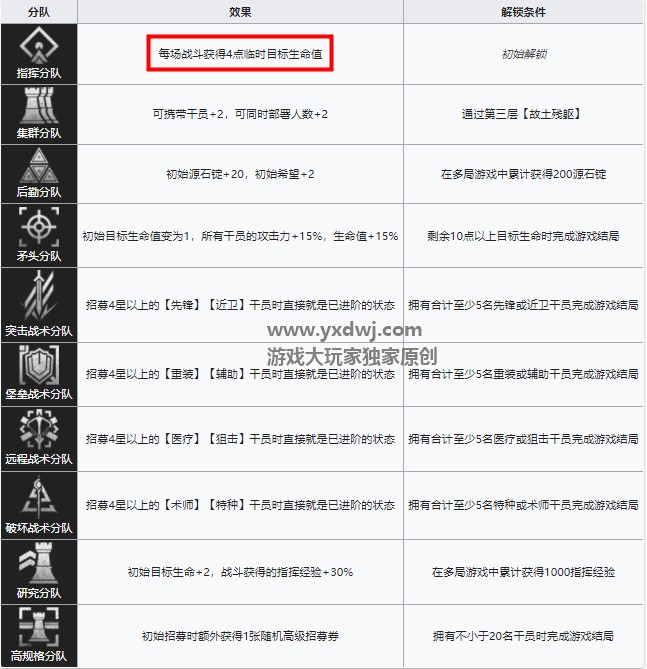 在这里新手我们推荐选择指挥分队,每次战斗都有4点假血,损失生命在4点以内的时候不掉真实血量。