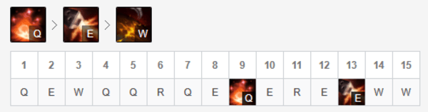 Q技能的伤害和清兵能力都很不错,作为核心技能。虽然E技能的伤害更高,但E技能需要贴脸,这对于前期作战能力欠佳的飞机来说不太理想,因此副加。W保命位移,前期点一级就够了。