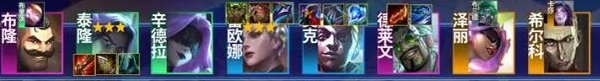 布隆、男刀、辛德拉、日女、艾克、德莱文、泽丽、希尔科