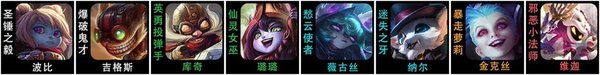 6约德尔、2极客、2枪手、2黑魔、1名流、1约德尔大王、1宿敌