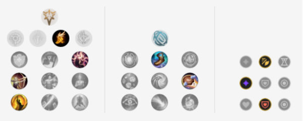 主系方面主打续航,迅捷步伐随积攒普攻可收益一定的回复效果并获取小移速加持,气定神闲随着击杀提升我们回复法力值的速度,欢欣随着击杀永久提升我们的攻击速度,致命一击提升对残血敌人的伤害保证稳定击杀。