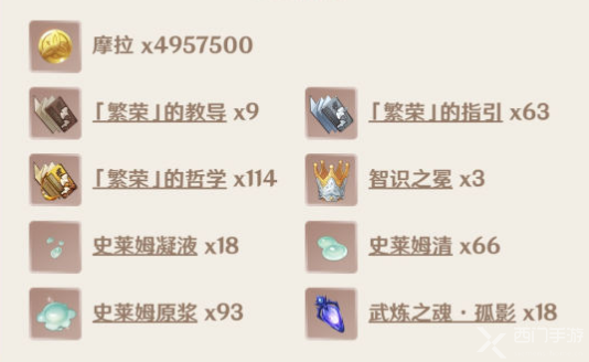 所需摩拉:4957500