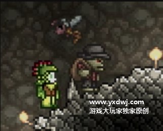 推荐玩家们到洞穴层吃一个狩猎药水来寻找,可以以高亮看到骷髅商人的位置。