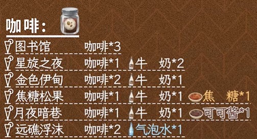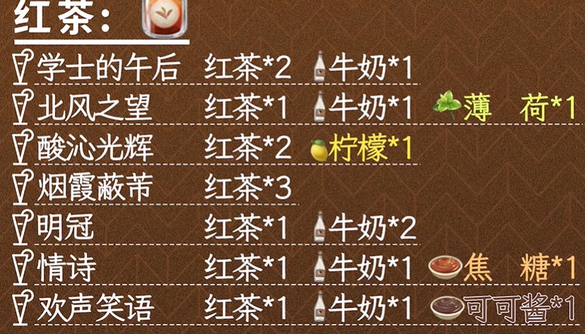 2.选择红茶*1 + 牛奶*1 + 焦糖酱*2,根据下方箭头指示完成搅拌即可