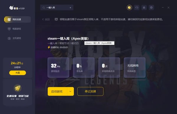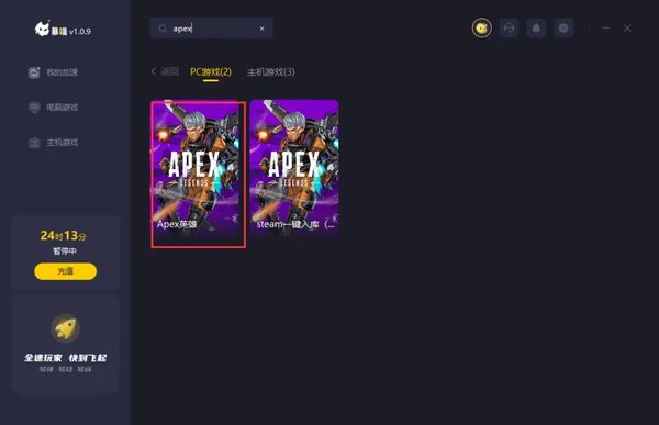 下载安装完成,切换至apex英雄进行加速。