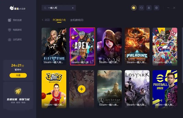 暴喵客户端搜一键入库,找到“steam一键入库apex英雄”点击加速。