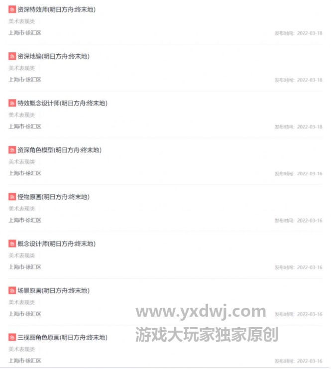点击可以看到鹰角今天更新了许多招聘职位,从计划到艺术和程序职位。