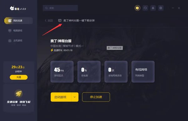 进入加速界面后,会弹出一键下载安装的教程,点击就进入