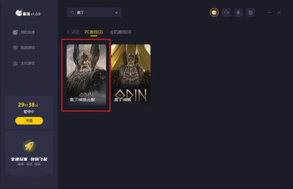 下载暴喵加速器,在暴喵中搜索奥丁神叛台服