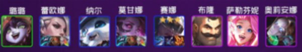 8人口后 :4-5或5-1升8人口,添加萨勒芬妮开3名流,阵容成型,之后继续追3星赛娜,顺带追蕾欧娜或莫甘娜,3星赛娜后可考虑升9人口挂杰斯。在8人口如果赛娜不胡,金克丝、泽丽或卡莎来的多也可考虑换C转白魔九五。
