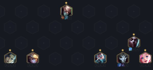 3 阶段 :3-2升6人口,如果有萨勒芬妮或发明心可直接考虑5发明,如果没有可考虑极客发明保镖+一个强势打工仔过渡如赛娜、男刀、纳尔等。其他体系体系看情况选择就好,6人口要的稳血,78人口才是这套阵容的发力点。