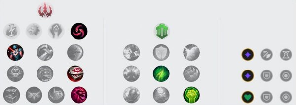主宰系的符文主要是丛刃,派克利用E+Q进场以后配合平砍可以很快的打出丛刃的爆发性攻速,这样在技能真空期的时候可以迅速的衔接平A打出一轮小爆发,早期对线的时候会非常好用,比较容易能打出压制。其他的符文点恶意中伤可以配合技能打出额外的真实伤害,眼球收集器容易叠加伤害,在后期输出更高。底层的终极猎人可以降低R技能的CD。