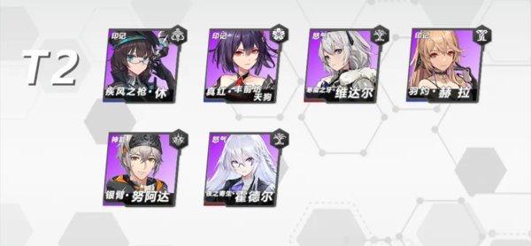 T2:疾风之枪休、真红丰前坊天狗、寒霜之牙维达尔、羽灼赫拉、银臂努阿达、夜之寄生霍德尔