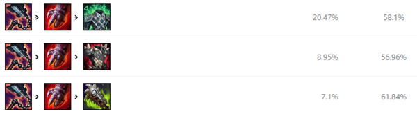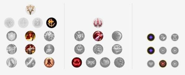 征服者让剑魔在持续作战中更强,凯旋增加团战生存能力,韧性能够减少被控制时间,坚毅不倒可以更好的反杀。血之滋味和贪欲猎手都能增加吸血,非常适合剑魔。