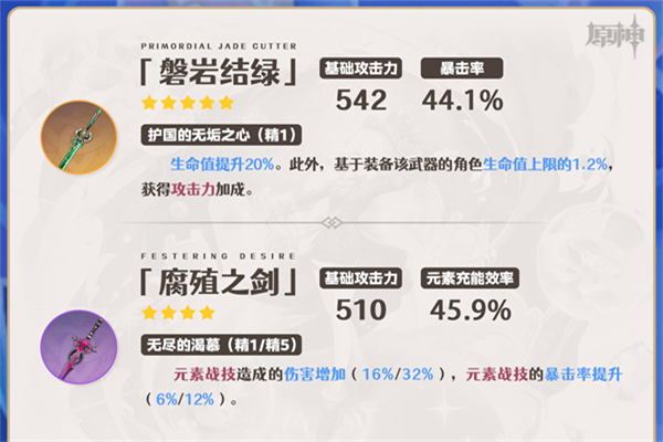 枫丹地区钓鱼协会兑换。提供高额充能效率,优化技能循环,提高元素战技的暴击率,没有腐殖之剑可以考虑使用。(钓鱼的过程会有些漫长……)