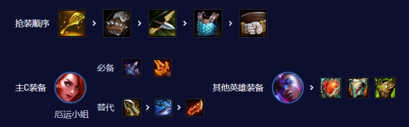 装备优先铲子合爵士乐转,其次就是拳套女枪的轻语无尽(超粉偷杀人剑),护甲腰带优先给艾克做肉装。