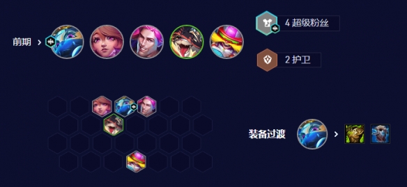 前期建议用3超级粉丝打工,后排用飞机或者金克斯带女枪装备,这是目前比较好的过渡方式。