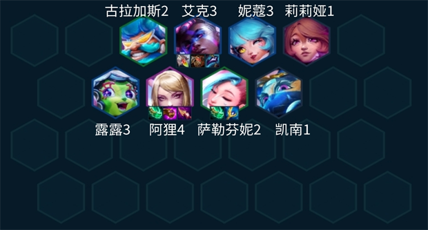 今天给大家分享的是一套不怕切的法师阵容,常规玩法其实阿狸你站中间,有露露控制基本阿卡丽飞着飞着被控制下阿狸就能带走她了。今天这套就是找萨勒芬妮来个扎堆铁王八的玩法,不断回血又肉又有伤害。