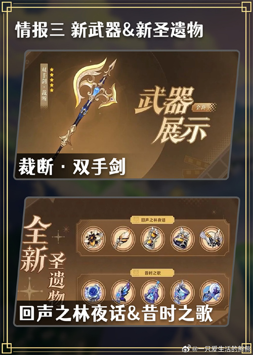 装备:新武器是2把双手剑,圣遗物这次也有新的了。