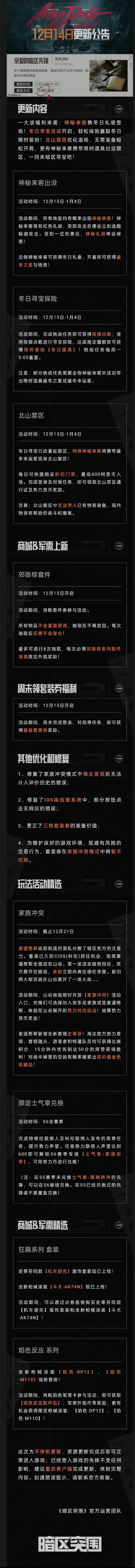 暗区突围12月14日更新公告