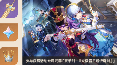 活动期间:限定4星武器「双手剑·恶王丸」「弓·曚云之月」,4星武器「单手剑·笛剑」「长柄武器・匣里灭辰」「法器·西风秘典」的祈愿获取概率将大幅提升!