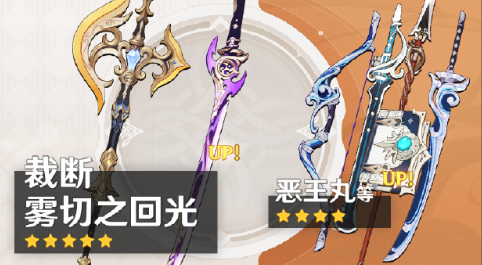 活动期间:可使用「神铸定轨」对本期5星UP武器「双手剑裁断」或「单手剑·雾切之回光」进行定轨