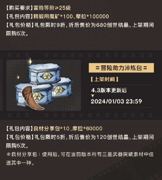 「冒险助力礼包」第28期限时上架