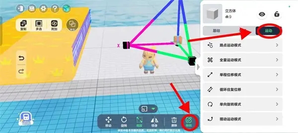 5、点击【编辑】,点击右侧的【运动】,即可选择运动方式。