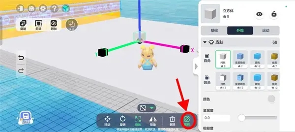 1、进入新建地图模式,放置【积木】,点击右下角【编辑】,选择右侧的样式。