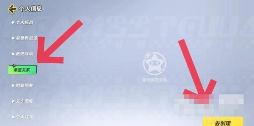 3、点击右下的去创建,然后点击需要建立关系的好友。
