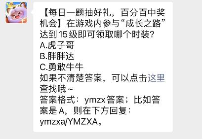 在游戏内参与“成长之路”达到15级即可领取哪个时装?