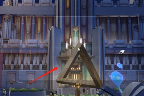 4、随后玩家移动鼠标调整视角,使这个雕塑看起来时三角形。