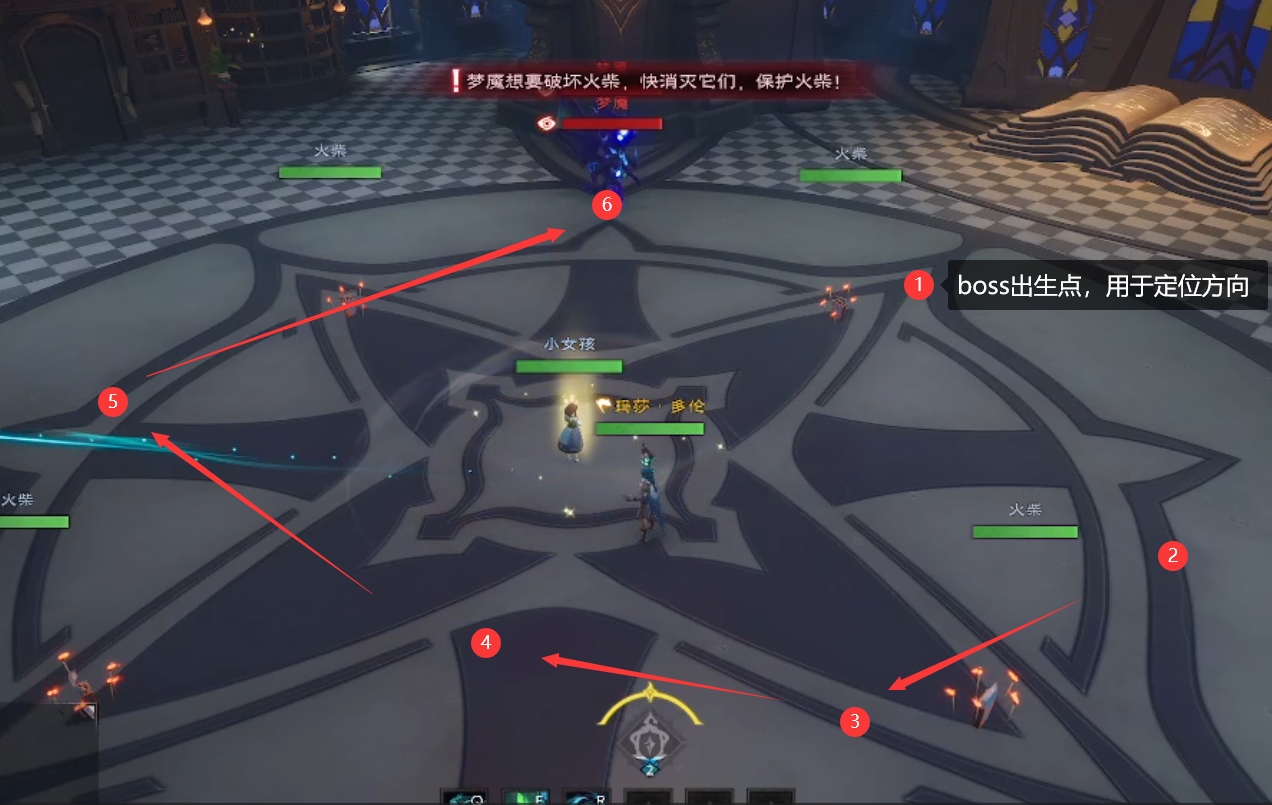 5、卖火柴的小女孩机制解法:开爆发集火秒掉小怪即可。进行机制时,出怪顺序是固定以小女孩为中心,BOSS出生点为起点,顺时针出现怪物;近战职业可以站到即将要刷怪的地方,避免浪费输出。