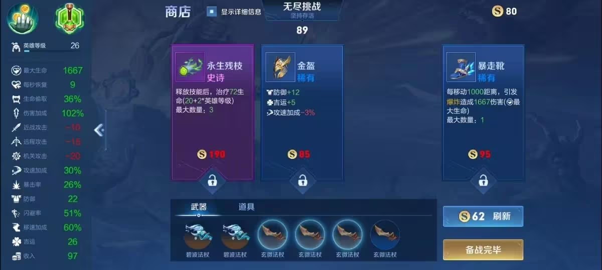 属性推荐:生命值,生命偷取,闪避,收入