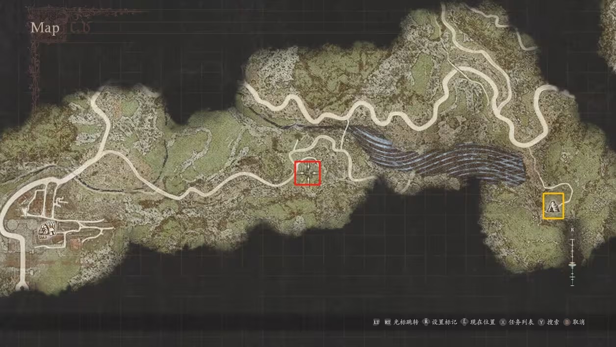 3、此时地图上标注的红色地点(如下图)就是任务位置,去往后会有发光的花朵将你带向黄色位置。