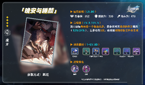 ②:“晚安与睡颜”光锥,高加伤,并且黄泉的负面效果非常契合该光锥,第二选择。