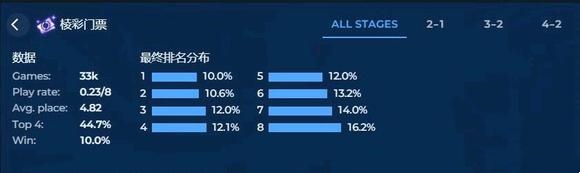 平均排名4.82、前四率43.7%、登顶率8.29%
