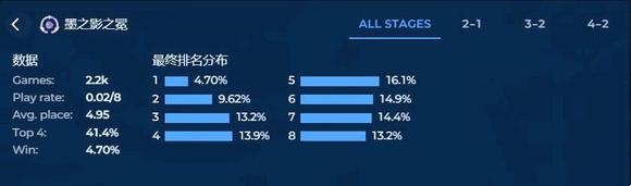 平均排名4.95、前四率41.4%、登顶率4.70%