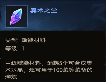 奥术水晶:通过分解110级装备和用5个奥术之尘合成获取。