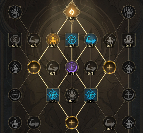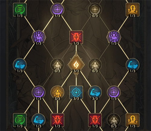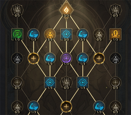 1、核心1/2/3:前置小节点全部点满,平均1个BOSS能出2-3次铭石能量,在提升AOE和个别减伤手段的同时也可以提高生存能力。