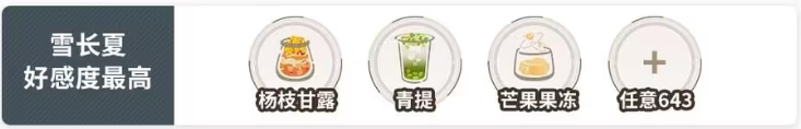 雪长夏好感度最高:杨枝甘露+青提+果冻+任意643