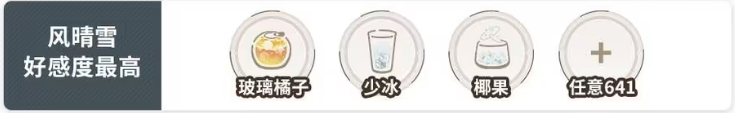 风晴雪好感度最高:玻璃橘子+少冰+椰果+任意641