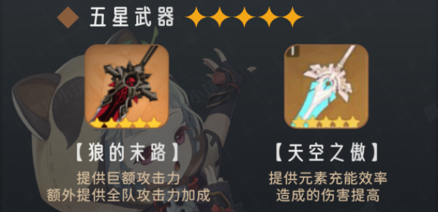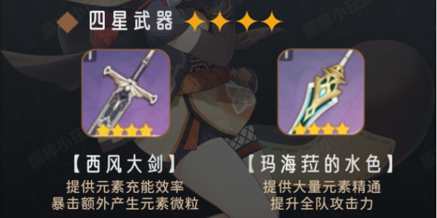 2、四星武器推荐:西风大剑、玛海菈的水色