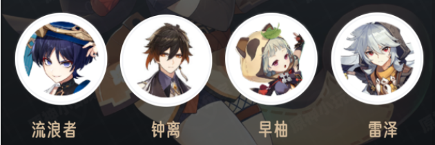 2、跑图+效率队:流浪者+钟离+早柚+雷泽。