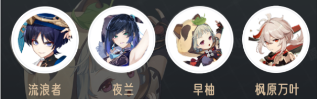 1、跑图+速抓晶蝶队:流浪者+夜兰+早柚+万叶。