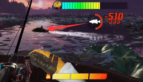 鱼咬钩是根据当前上钩的鱼的血量来触发的,当上钩的鱼被消耗至一定的血量有概率会出现,半血的鱼出现鱼,较低概率会直接咬钩。
