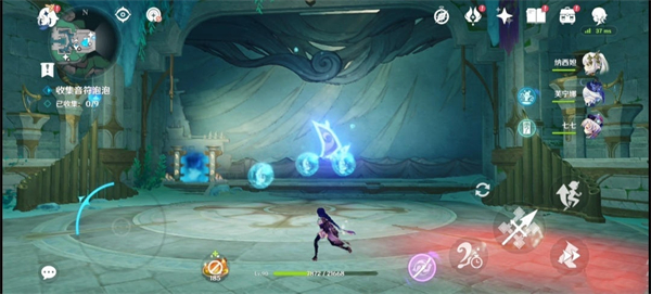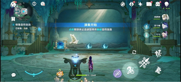 点按乐章释放休止余波可以暂停泡泡,然后我们触碰收集8个泡泡即可。